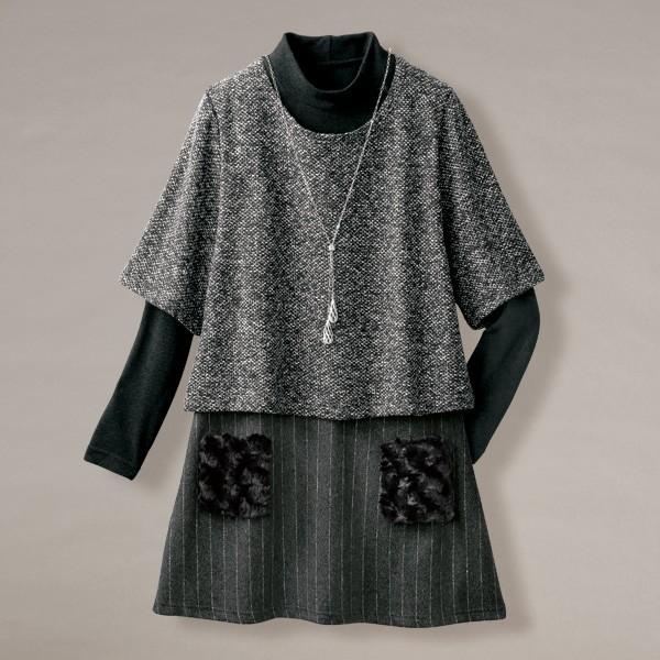 チュニック トップス モノトーン シック 服 異素材使いデザインアンサンブル 50代 60代 70代 80代 ファッション ミセス シニア レディース 婦人服 京都通販 ミセスのファッション館 通販 Yahoo ショッピング